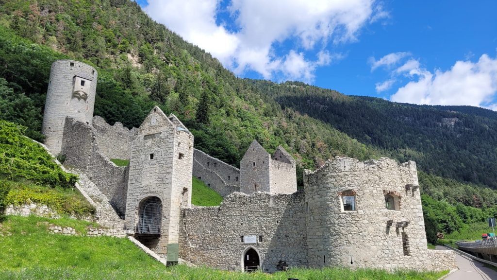 Als Nächstes bleiben wir in Sterzing bei Franzensfeste stehen. Dort gefällt es uns echt gut – vorallem da die Eisack viel smaragdgrünes Wasser führt. Natürlich wollen wir uns die Festung dann auch gleich anschauen – müssen aber enttäuscht feststellen, dass alle Festungen in Südtirol montags nicht für Besucher geöffnet sind – und mit Radschuhen klettern hat uns auch nicht direkt angesehen.