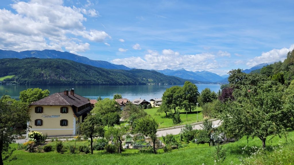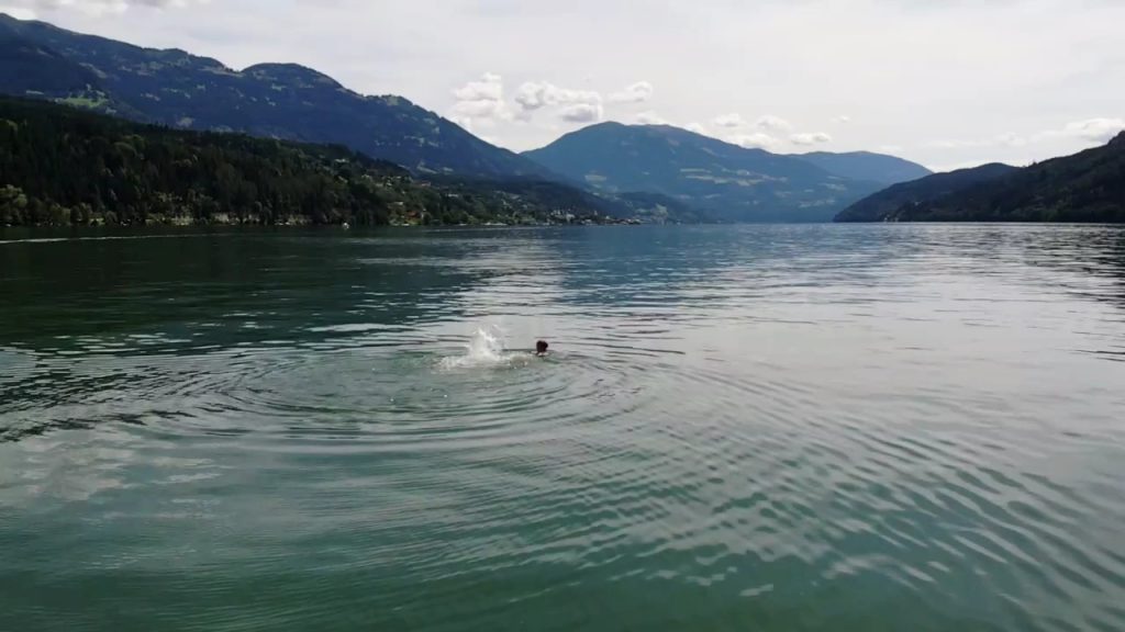 Am nächsten Tag geht es früh weiter – wir wollen ja schließlich – nachdem der Italien-Urlaub keine zehn Stunden gedauert hat – die Seen in Kärnten ein bisschen länger genießen. Doch schon bald macht sich Rene’s Knie ungut bemerkbar. Auch Pausen scheinen nicht zu helfen. Im Gegenteil: Nach jedem Mal stehenbleiben ist es, bis man wieder eingefahren ist, besonders problematisch. Mit vielen Pausen und langsamer als geplant schaffen wir es dann doch zum Millstätter See, wo wir erst einmal eine Badepause machen. Der See liegt echt schön und kann uns natürlich sofort begeistern – wir kommen jedoch nicht umhin, festzustellen, dass die Stege unter Wasser sind.