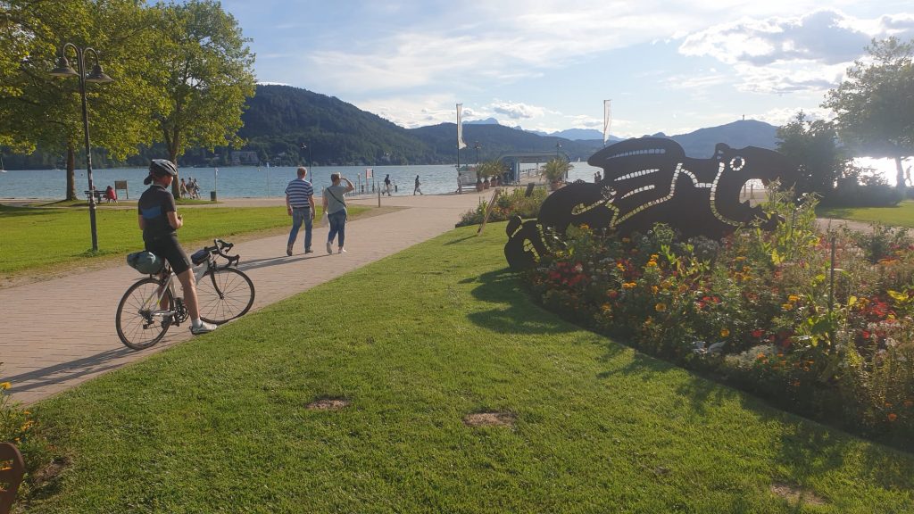 Danach beschließen wir einen change of plan: Anja zieht die Runde durch und Rene fährt mit der Bahn nach Klagenfurt, wo wir uns am Wörthersee nochmals zum Schwimmen treffen. Nach einer schnellen Klagenfurt Tour und einem kurzen Abstecher im botanischen Garten treffen wir uns wieder beim überfluten Strandbad, gönnen uns ein Eis und springen nochmals ins Wasser. Dann geht es für uns zum Bus nach Graz, was das Ende des Trips markiert.